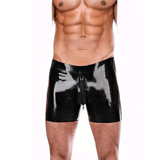Black Latex Boxer Shorts for Men,Latex Underwear with Zipper